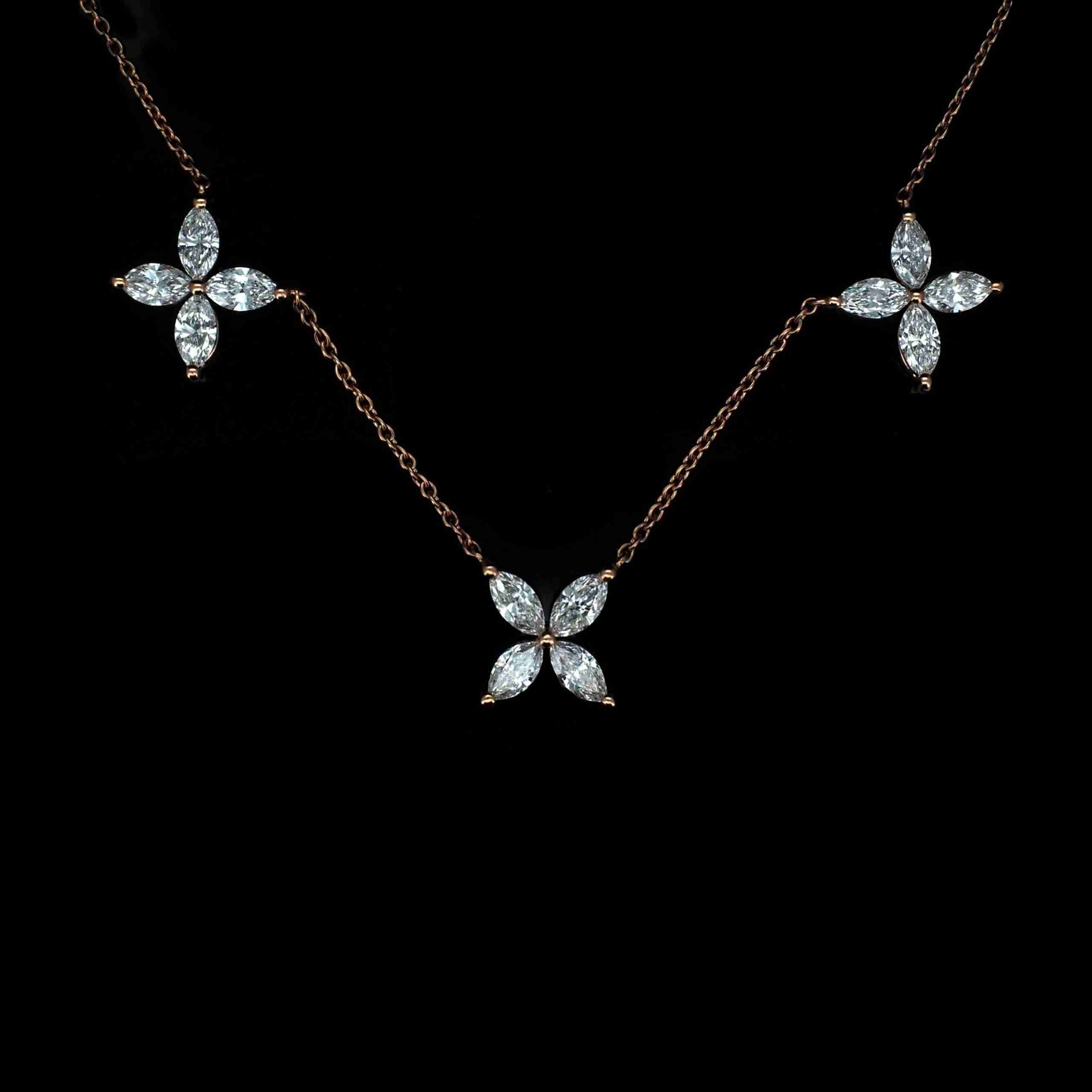 18K Gold Three Flower Necklace #16″/17″/18″